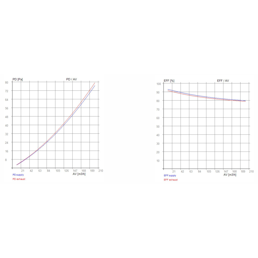Beide Werte werden maßgeblich durch die Konstruktion des Tauschers, die Qualität der Membran und insbesondere den Luftvolumenstrom beeinflusst, bei dem der Tauscher betrieben wird.