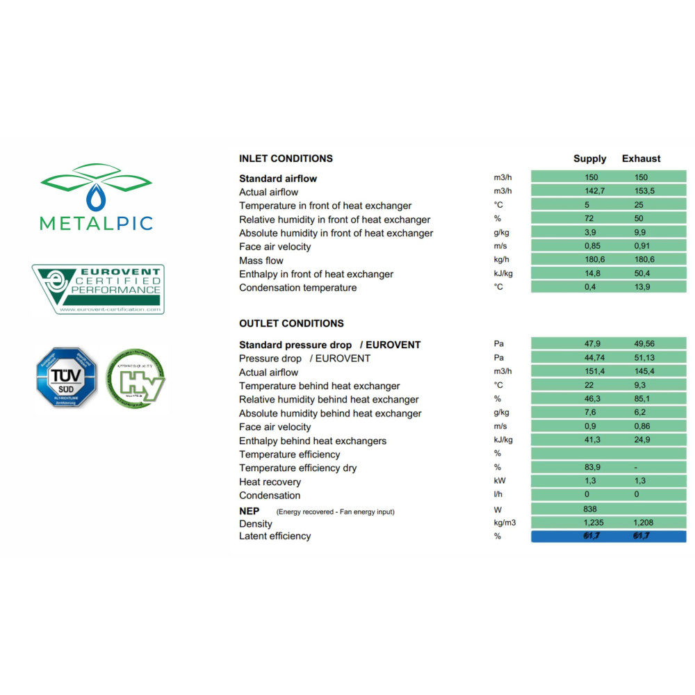 | Leistung bei einem Luftvolumenstrom von 150 m³/h | ||||