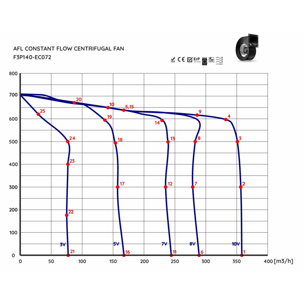 Sie sind mit einem EC-Motor mit integrierter Elektronik ausgestattet, der unabhängig von sich ändernden Druckbedingungen im System automatisch einen konstanten Luftstrom aufrechterhält .