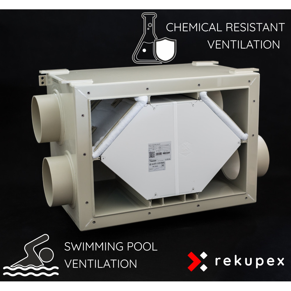 RECUBOX® X-POOL ist ein hochwertiges chemisch beständiges Lüftungsgerät mit Wärmerückgewinnung, das für die Wärmerückgewinnung der Luft in Schwimmbädern, Wellnesszentren, Saunen, Laboren und anderen Bereichen mit hoher Luftfeuchtigkeit oder dem Vorkommen leicht aggressiver Chemikalien ausgelegt ist.